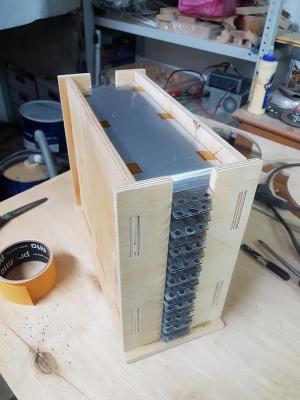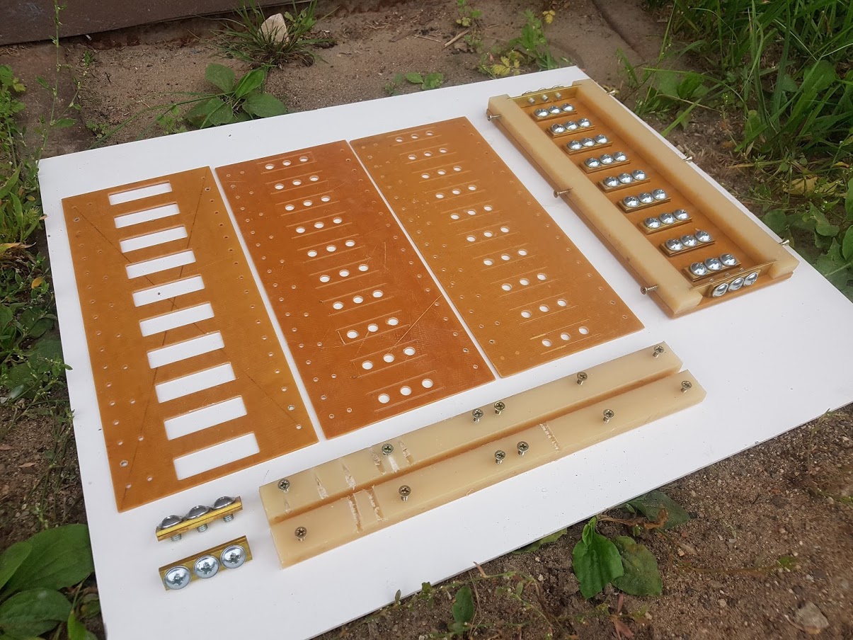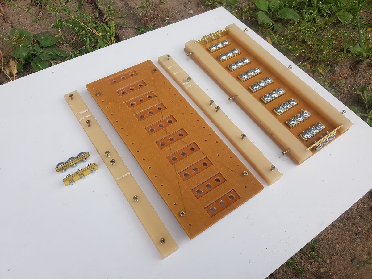 Колодка для крепления ячеек из стеклотекстолита 1,5мм, латунных полосок и брусков пластика.