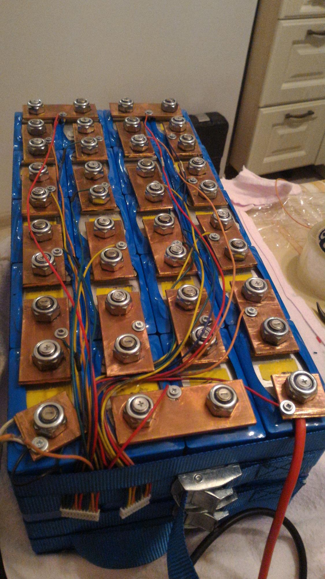 [user]FobOrgan[/user],  Катаюсь на них, плюс пакеты а123 20ач. Всё в паралель, т.е. 3п16с. (2 шоколадки+ 1 большой блестящий) В обшем домучиваю то что есть. Из всей сборки при нагрузке 50а снимается 25ач.