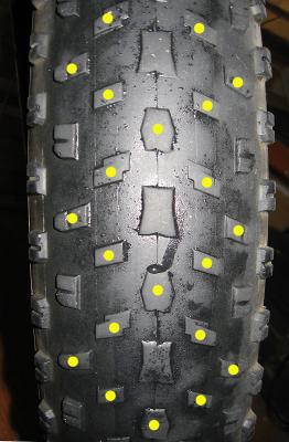 Почему центр не шиповать? Будет тяжелее ехать, поворпачивать и пр.( я считаю). Данная шиповка на переднем колесе  :wow: будет( я считаю). 6 рядов "шипов" изумительно вгрызутся в лед. Фэт выше дорожного вела, и с него упасть... Поэтому рекомендую надежное. Даже те бокам рекомендую зашиповать, потому что кости хрупче асфальта.