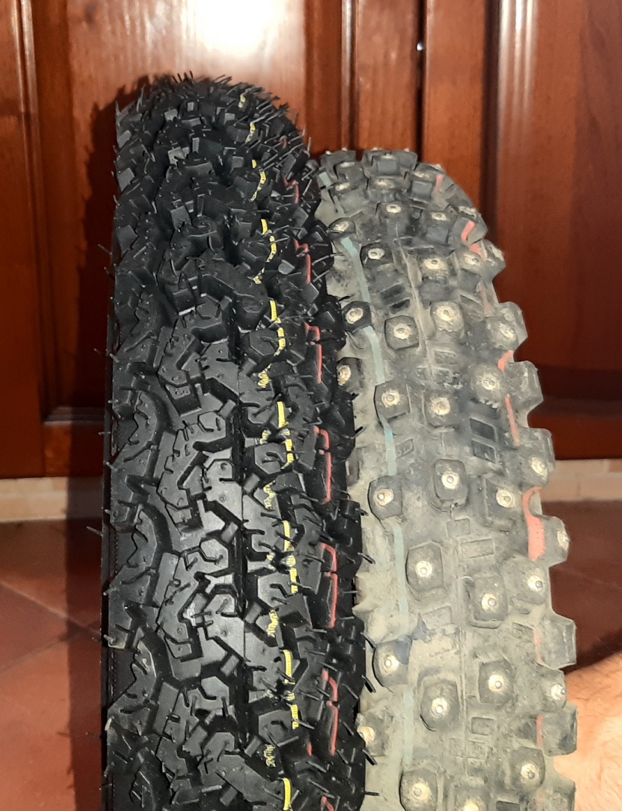 Сколько читал в инете, два мнения на этот счет, и они диаметральны - одни пишут, стачиваются быстро, другие, что не 1 сезон откатывают. Сдается мне тут 2 причины - разной твердости саморезы и разные условия езды. В моем случае например практически полное отсутствие мест зимой, где я зимой ехал бы по асфальту дольше 5 минут в общей сложности за одну поездку. Ну и видимо третья причина - характер шиповки. Хочу зашиповать так, чтобы на асфальте контакта шипов с асфальтом не было или практически не было, чтобы шипы работали только при попытке колеса уйти в завал и когда под резиной есть какой-то слой, который колесо хотя бы чуток продавливает, поэтому вариант 2, что на фото, уже отмел. К тому же есть чувство, что тут два оптимальных варианта, или колхозить совсем по-нищебродски - резина, которую уже не жалко + саморезы - или покупать новую заводскую шипованную покрышку. А вот варианты посередине - старая полустершаяся резина + хорошие шипы - просто овчинка выделки не стоит. Нет, имхо, смысла в почти лысую Чао с уже очень невысокими шашками протектора вкручивать такие шипы, одни слезы получатся. Надо попробовать сперва нищебродский вариант, а там сделаю вывод, надо ли оно мне в принципе - тогда можно будет и о фирменной резине с шипами подумать, или о специально купленной под это новой покрышке + заводские шипы. Так как-то.